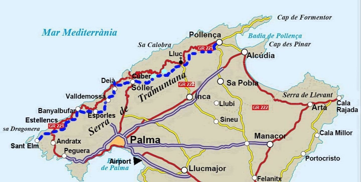 La ruta más fácil de la semana de senderismo discurre por el «Camí des Pintors», pasando por casas antiguas del siglo XIII. Esta ruta, de origen árabe, servía de enlace entre las ciudades de Sóller y Deià. Cuando hace buen tiempo, puedes tomar varias pausas para nadar. También existe la opción de dar un paseo por el pueblo de Sóller, considerado la “capital” de la Tramuntana.